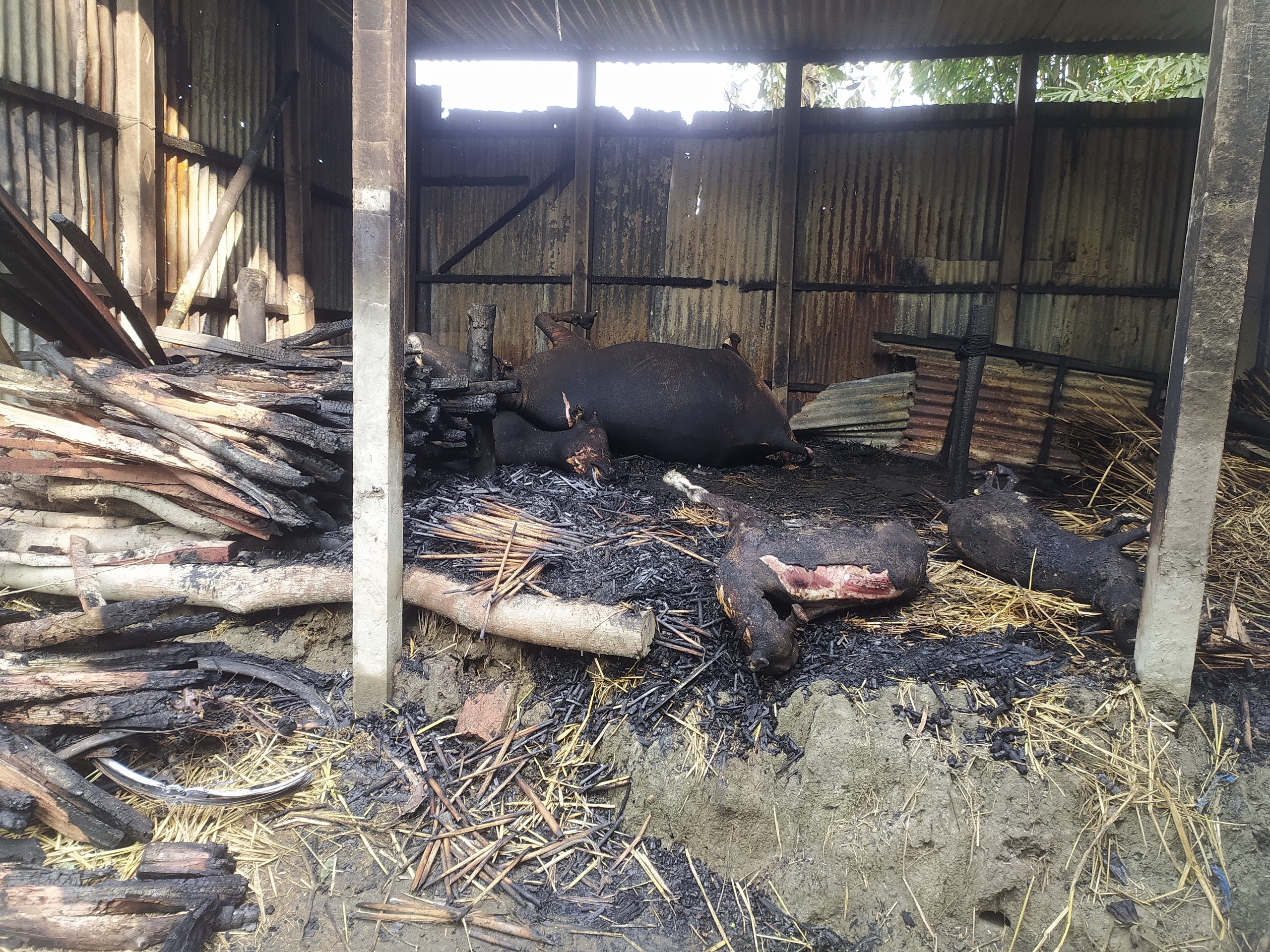 প্রতিবেশীরা গোয়াল ঘরে আগুন নেভানোর চেষ্টা করে ততক্ষণে গোয়ালে থাকা