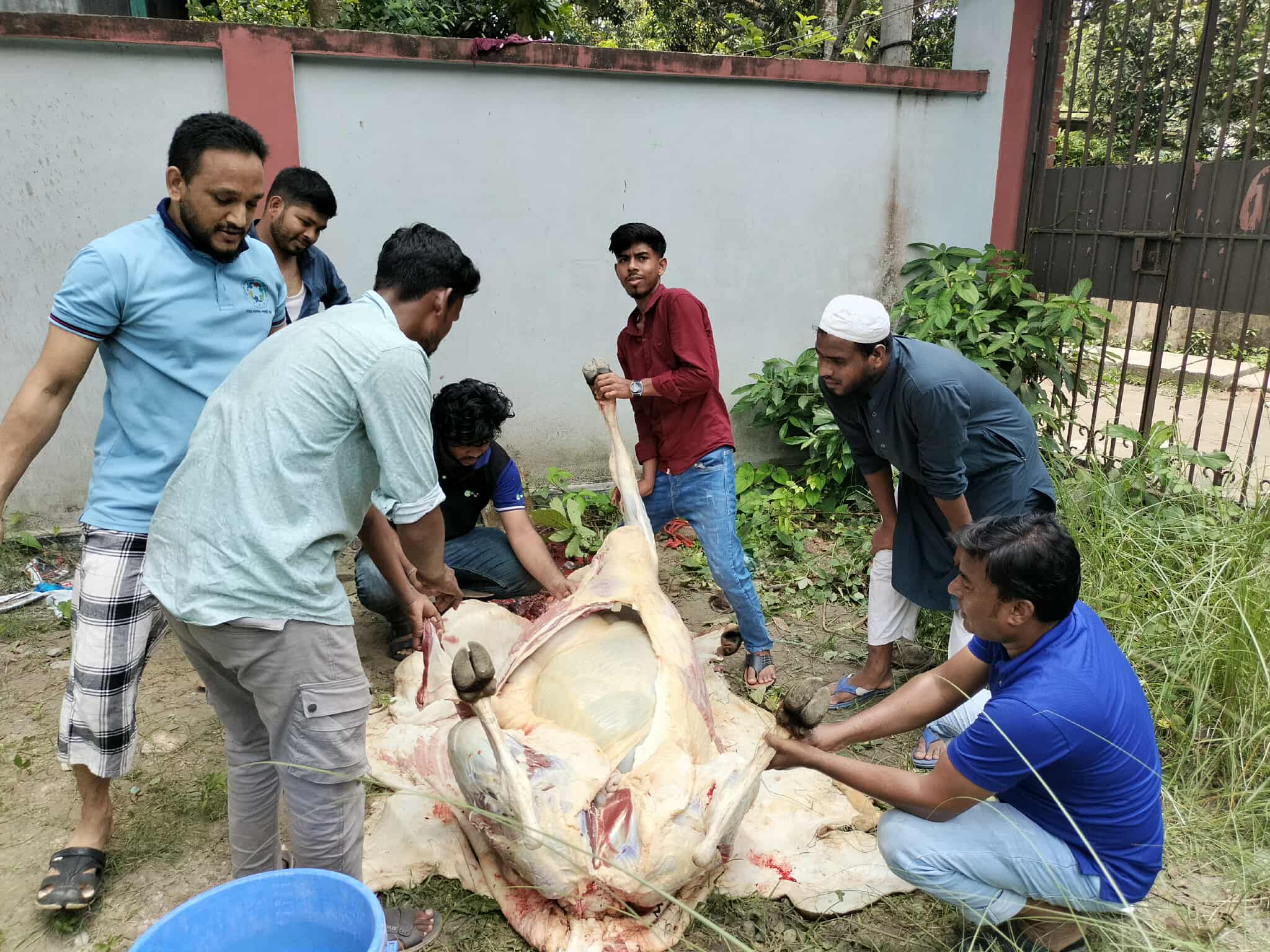 পরে পশু কোরবানি শেষে সকল সদস্য ও গরীব, দুস্থদের মাঝে মাংস বিতরণ করা হয়।