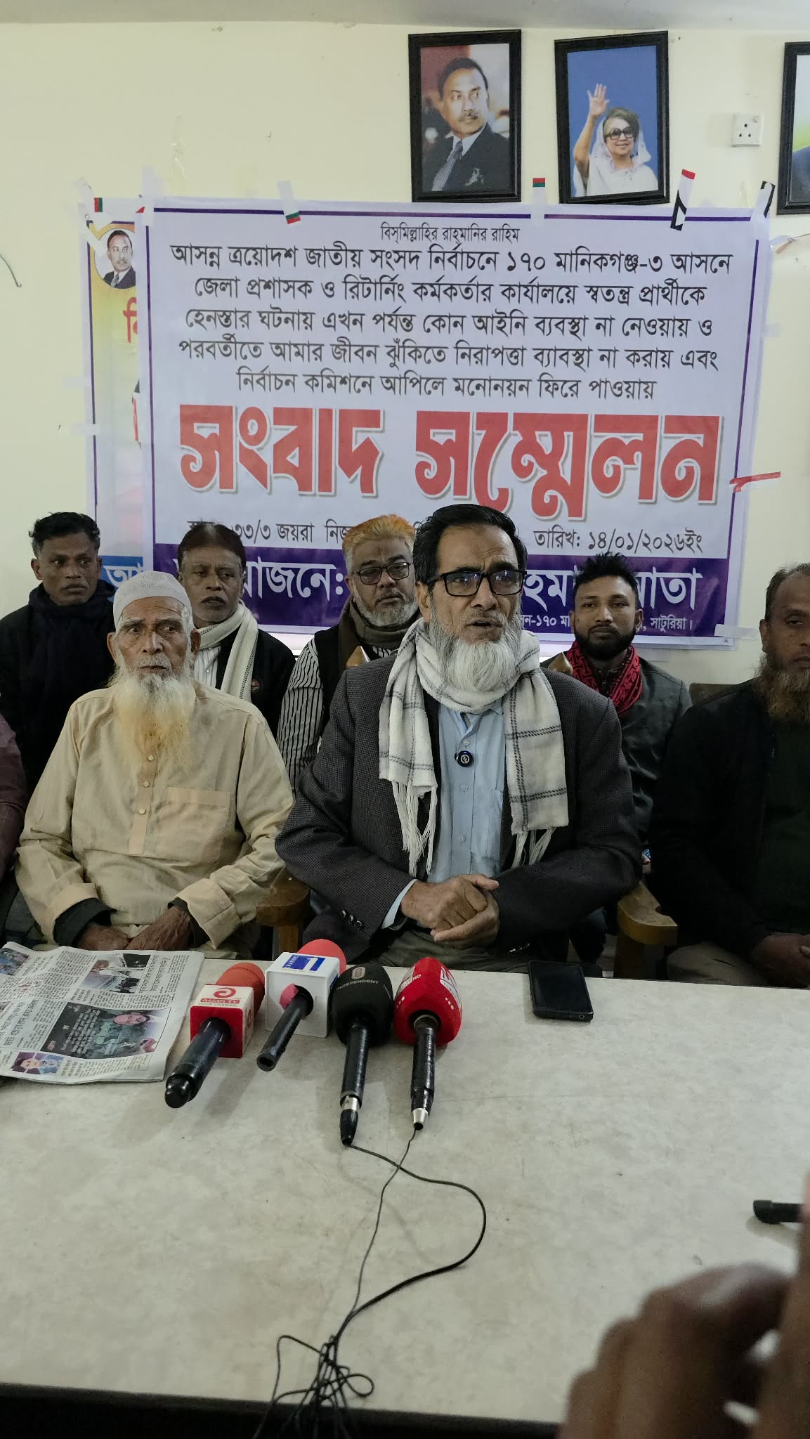 বুধবার সকাল সাড়ে ১১টায় মানিকগঞ্জ পৌর এলাকার জয়রা গ্রামে নিজ বাসভবনে সংবাদ সম্মেলন করেন তিনি।